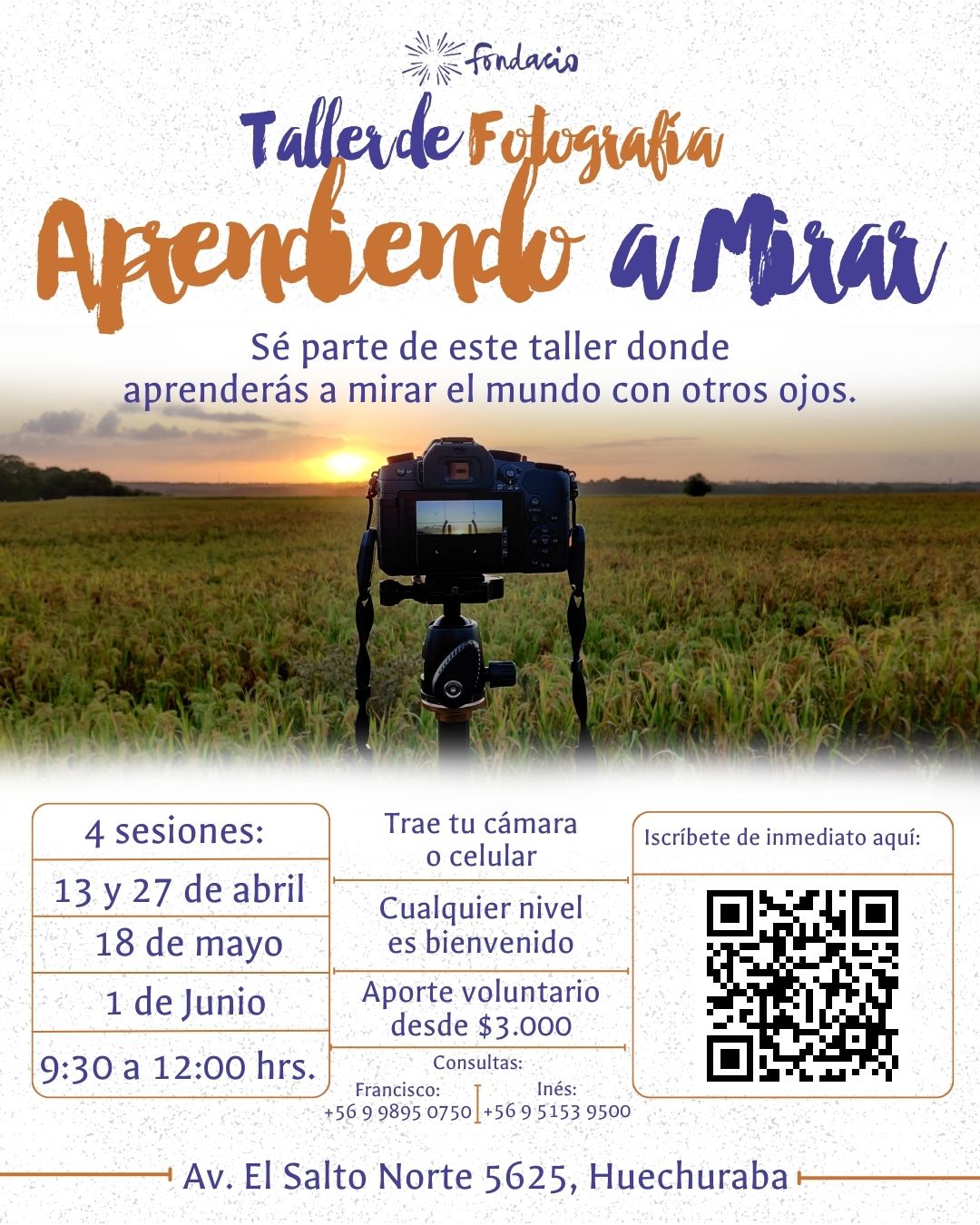 Para más información o para asegurar tu lugar, comunícate con Inés al +56 9 5153 9500 o con Francisco al +56 9 9895 0750. No pierdas la oportunidad de conectar con tu pasión por la fotografía y de compartir en un espacio de crecimiento y comunidad.